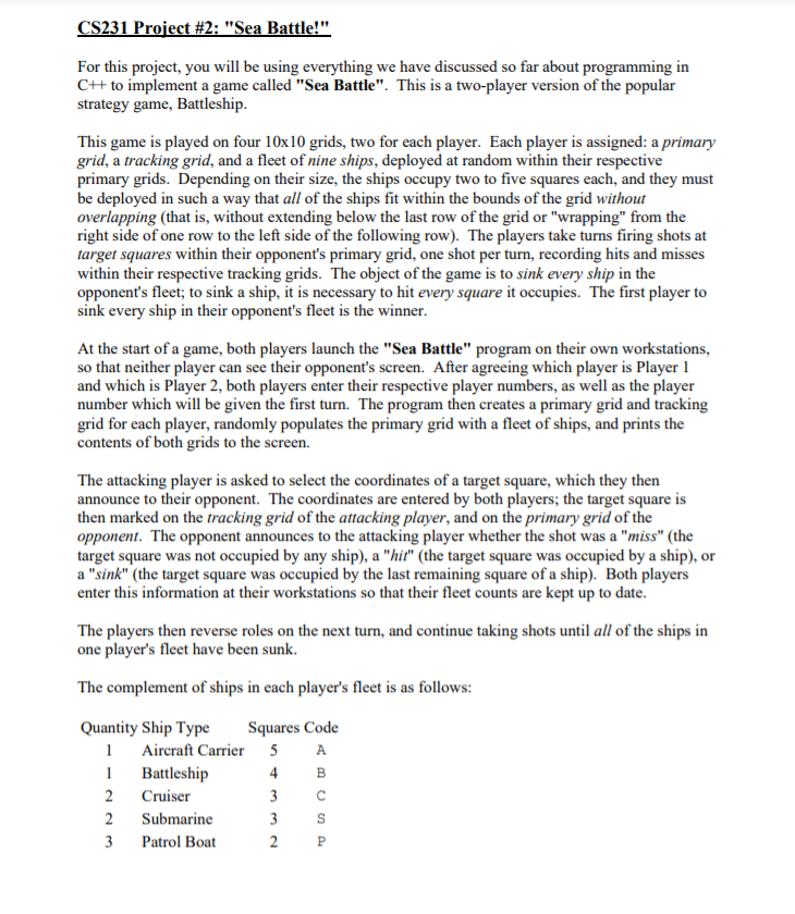 Solved Cs231 Project 2 Sea Battle For This Project You Chegg Com